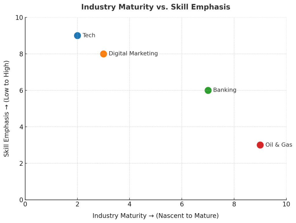 In contrast, in more established and regulated industries such as oil and gas, as well as certain finance roles, the emphasis remains on established knowledge and compliance, making degree qualifications particularly relevant. This trend reflects broader global patterns observed in the supply and demand for skills, as well as ongoing modernisation efforts in technical and vocational education and training (TVET).